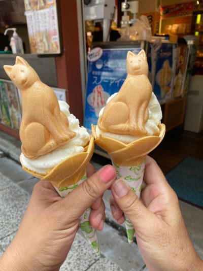 伏見稲荷大社では、狐が神のお使いと言われています。普通の神社にある狛犬の代わりに伏見稲荷大社は狐が両脇に座っています。そして神狐がくわえているものが違います。稲魂は財宝の象徴としての貴重な玉を表し、巻物は秘伝など大事なことを書き記した巻物で、鍵はお米などの大切なもの収める蔵の鍵をあらわし、稲穂は食生活の基本となる豊かに実った稲穂をあらわしているそうです。大切なものをくわえてお稲荷さんを守っています。